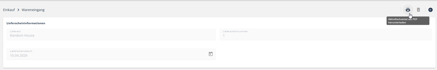 Möchten Sie nach dem Wareneingang den Abholfachzettel drucken, können Sie dies entweder über das Pop-Up-Fenster nach dem Buchen machen oder im Nachgang.