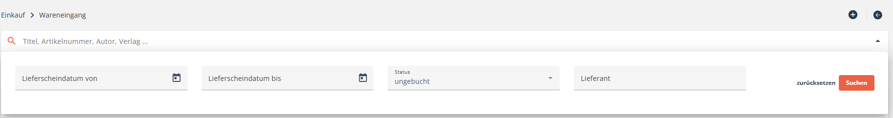 Möchten Sie einen bestimmten Wareneingang bzw. Lieferschein suchen, können Sie das über das Suchfeld in der Übersicht der Wareneingänge machen.